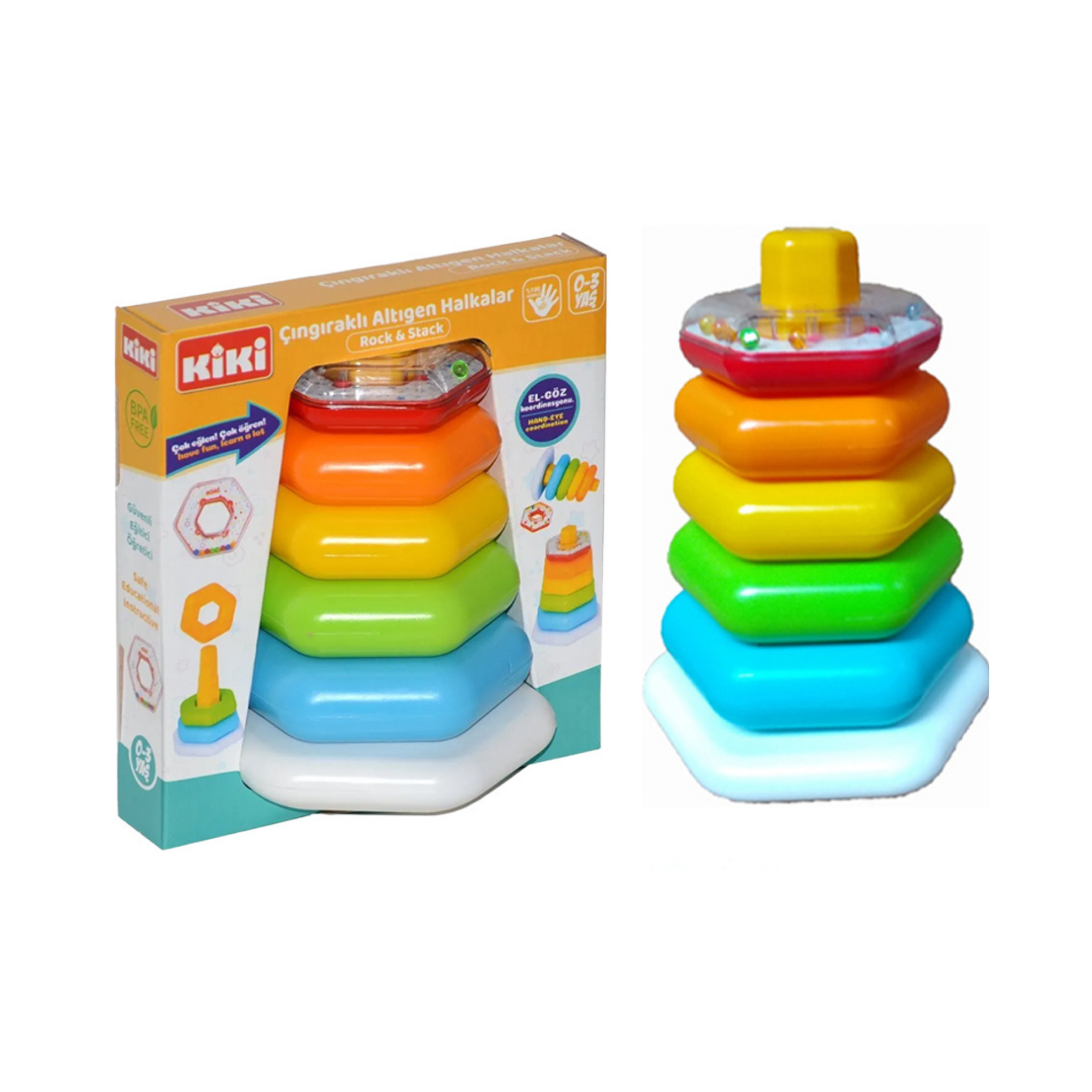 Çubuğa Geçen Renkli Çıngıraklı Altıgen Halkalar