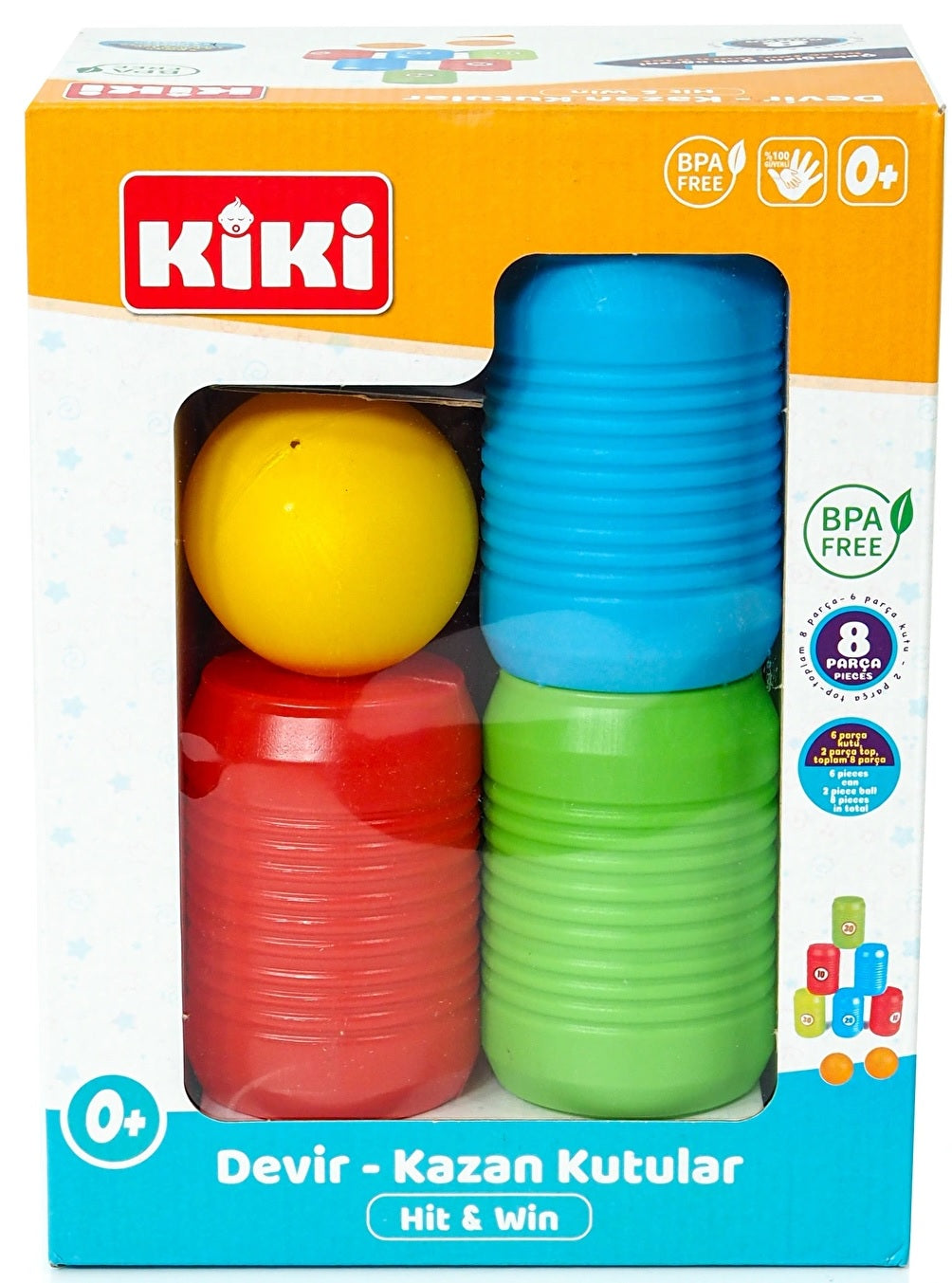 Toplam 8 parçadan oluşur (6 kutu, 2 top).