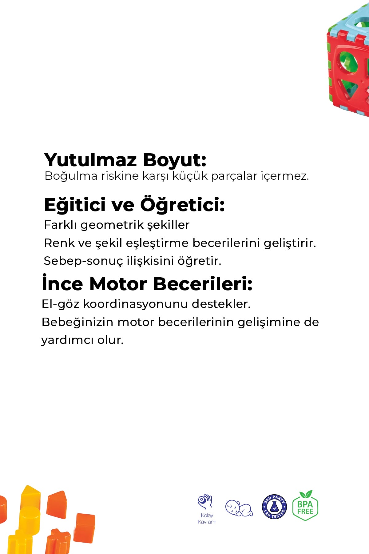 Farklı geometrik şekilleri tanımayı ve doğru yuvalara yerleştirmeyi öğretir.